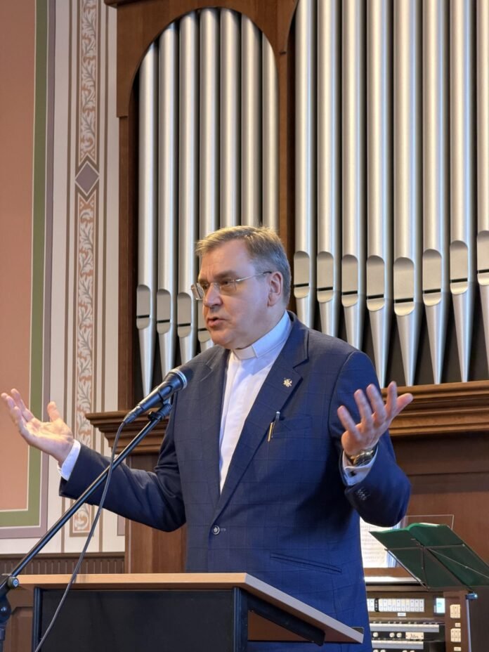 Kun. dr. Vladas Gedgaudas išsamiai pristatė knygą, jos aspektus ir pabrėžė jos naujumą Lietuvoje: „Lietuvių kalboje tokios knygos dar neteko skaityti.“