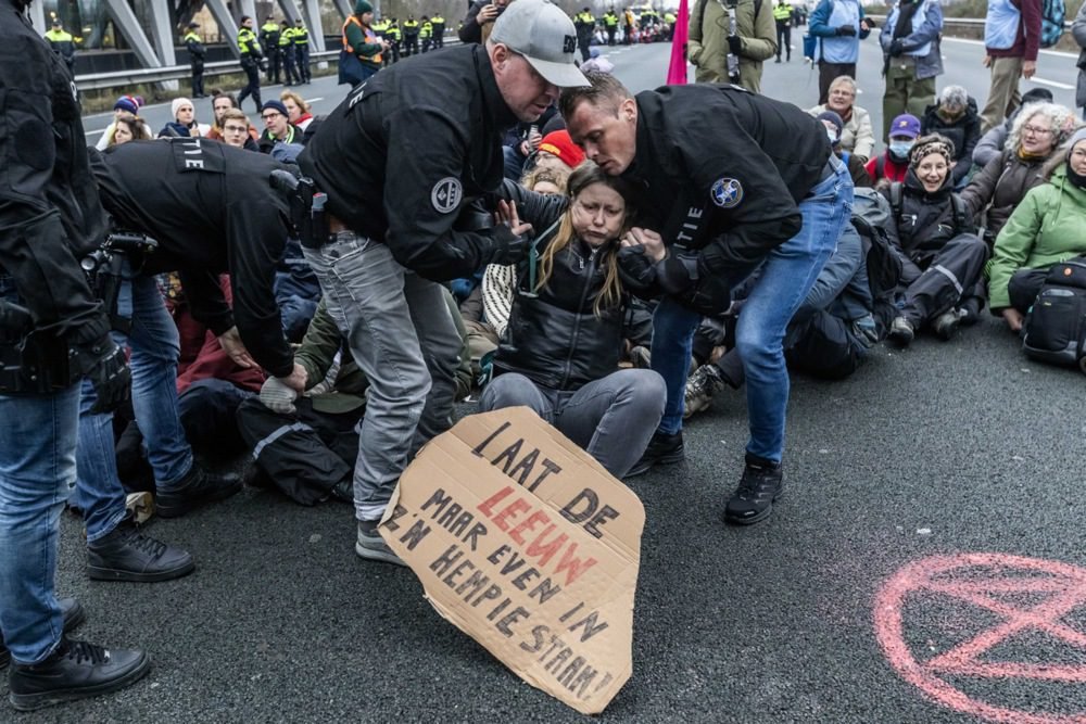 Anksčiau vykusiuose protestuose Hagoje policija panaudojo vandens patranką, kad priverstų aktyvistus pasitraukti nuo kelio, ir sulaikė šimtus žmonių.