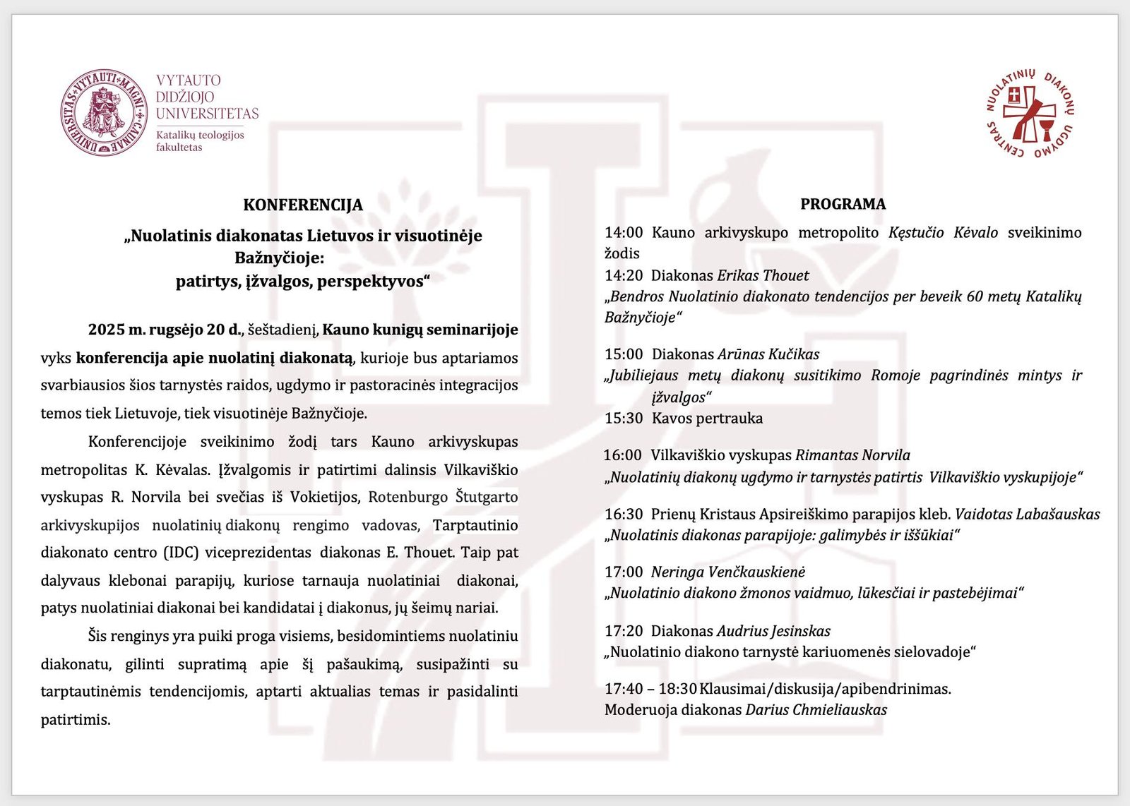 Organizatoriai: Nuolatinių diakonų ugdymo centras, VDU Katalikų teologijos fakultetas.