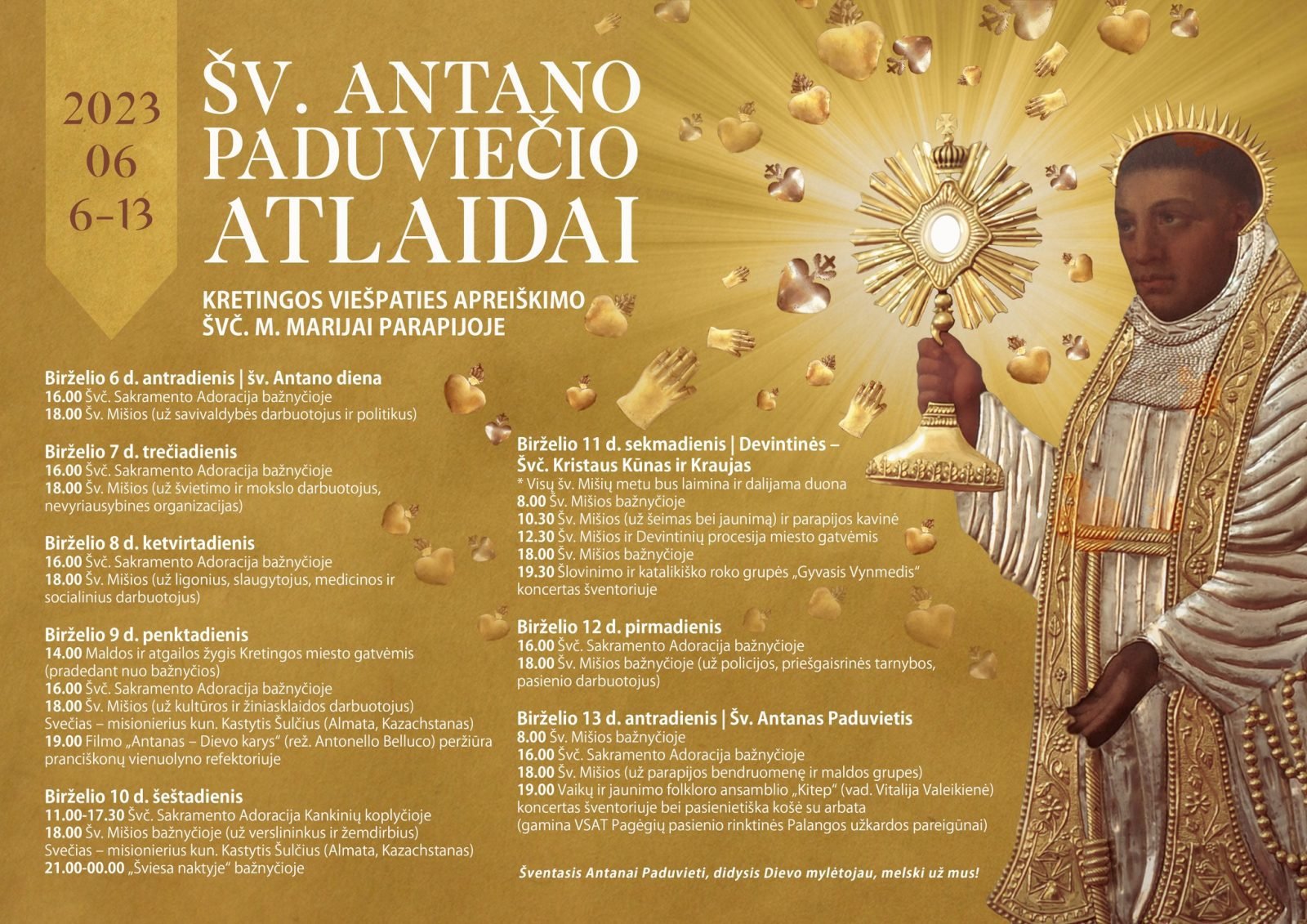 Kretingos Viešpaties Apreiškimo Švč. M. Marijai parapijoje bus minimi Šv. Antano Paduviečio atlaidai. Jie vyks birželio 6-13 d.