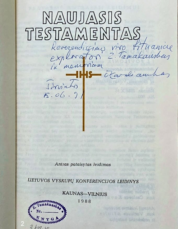 Kiek vėliau dar keletą kartų teko susitikti su šiuo garbingu kunigu. Vieno susitikimo metu jis man padovanojo su savo įrašu jo paties išverstą Naująjį Testamentą.