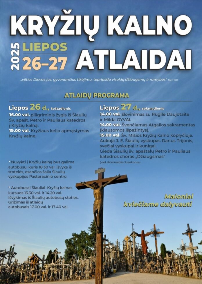 Kviečiame visus – šeimas, jaunimą, vyresniuosius – dalyvauti šiuose ypatinguose atlaiduose, kurie šiemet įgyja dar gilesnę prasmę. Tebūnie šis susitikimas Kryžių kalne kiekvienam iš mūsų stiprybės, ramybės ir vilties šaltinis.