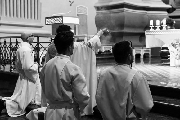 Trečiadienio vakarų maldą Kauno arkikatedroje lapkričio 22-ąją pratęsė Kauno arkivyskupijos Katechetikos centras, susirinkę tikybos mokytojai ir katechetai.