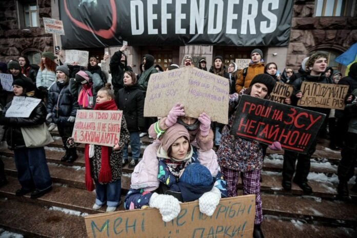 Šimtai protestuotojų, pasipiktinusių, jų nuomone, neprotingu savivaldybės pareigūnų išlaidavimu, ketvirtadienį susirinko prie Kyjivo savivaldybės ir reikalavo, kad pinigai būtų skirti Ukrainos kovai su Rusijos plataus masto invazija, o ne vietos projektams.