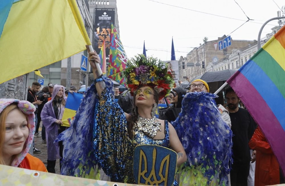 „Ar tai teisinga, kai žmonės aukoja savo gyvybes? Ne“, – sakė eitynių dalyvis, įkūnijantis „drag queen“ personažą Marlene Scandal (Marlen Skandal). Į „Pride“ paradą jis atėjo pasipuošęs visų vaivorykštės spalvų gėlėmis ir trišakiu, pavaizduotu mėlynai geltoname Ukrainos herbe.