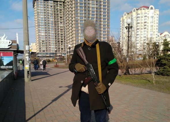 Po pokalbio jis patraukė į šalia jo namų, netoli Kijevo senamiesčio, esantį budėjimo punktą, kur tikrina automobilius ir gamina Molotovo kokteilius, skirtus susirėmimams su Rusijos kariais.