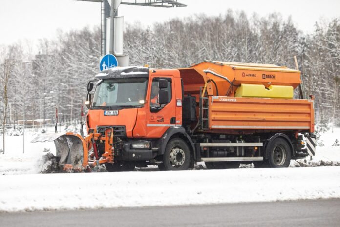 „Kelių priežiūra“ slidžius kelių ruožus valo ir barsto, tačiau vairuotojai įspėjami rinktis saugų greitį.