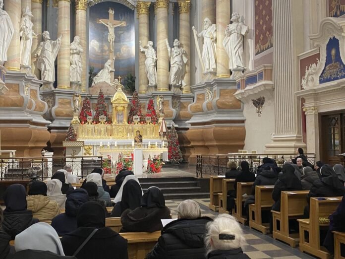 Prieš iškilmingą Kristaus Paaukojimo šventės Eucharistiją arkivyskupas kartu su vienuoliais ir vienuolėmis giedojo Akatistą – brangų senovinį himną Dievo Motinai – Tai, kaip sakė ganytojas, kuri yra Viešpaties išrinktoji, Tai, kuri suteikia viltį keliaujantiems į Tėvo namus.
