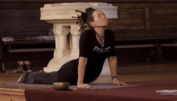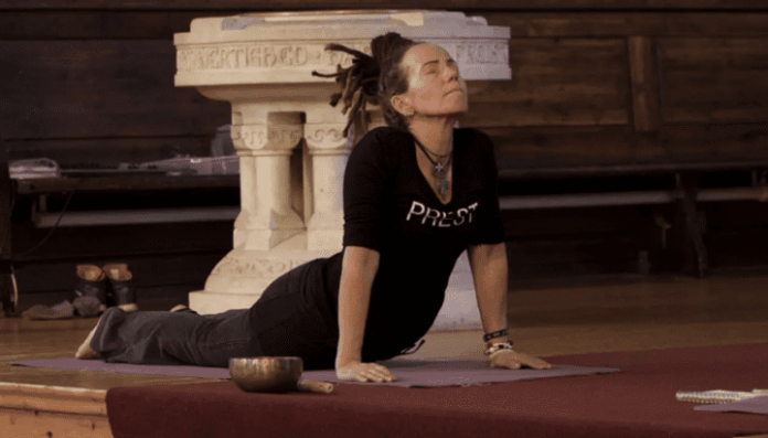 Liuteronų dvasininkė Suniva Giūlver veda pamaldas, kuriose derina tradicinę liturgiją ir jogos elementus