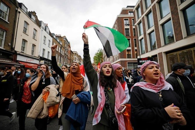 Londone keli tūkstančiai protestuotojų, nešusių plakatus su užrašais „Nustokite bombarduoti Gazą“ ir skanduojančių „Laisvė Palestinai“, susirinko prie Marmurinės arkos, netoli Didžiosios Britanijos sostinės Haido parko, iš kur patraukė link Izraelio ambasados.