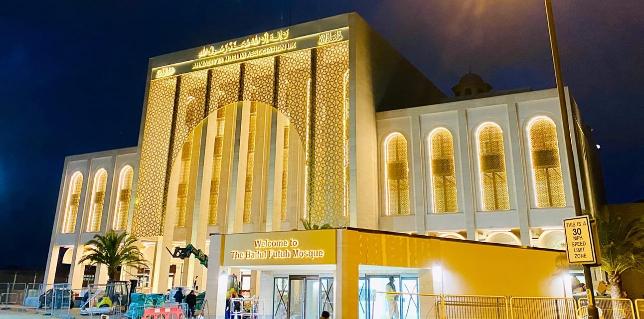 Achmadijų bendruomenės penkių aukštų Baitul Futuh mečetėje, esančioje Pietų Londono Mordeno rajone, gali tilpti iki 13 000 maldininkų.