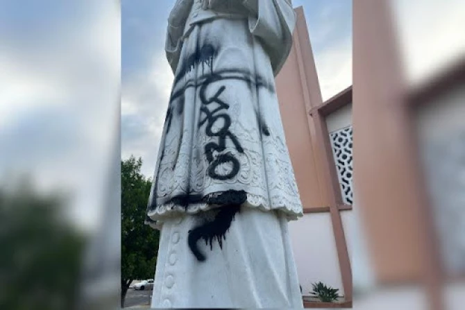 Rugpjūčio 7 d. parapijos mylima šv. Pranciškaus Salezo – parapijos globėjo – statula buvo apdažyta geltonais dažais.