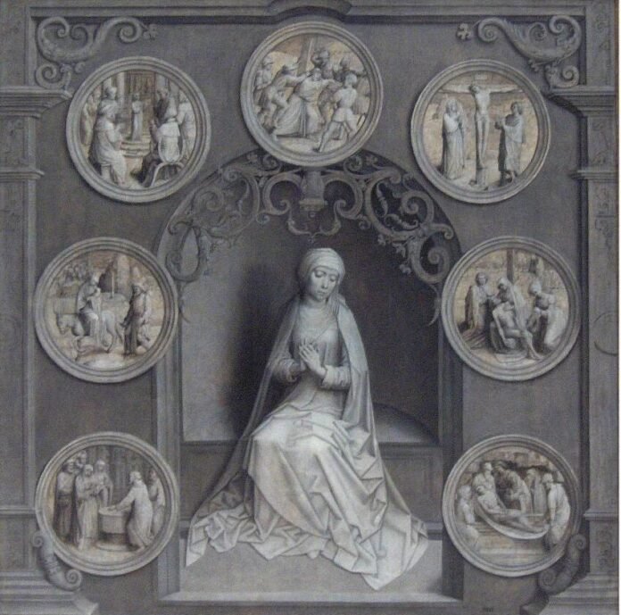 Sopulio draskoma motinos širdis kentėjo su savo sūnumi, – kaip ir Jis, savo širdyje ji buvo ant kryžiaus. Ir mirė širdyje kartu su juo.