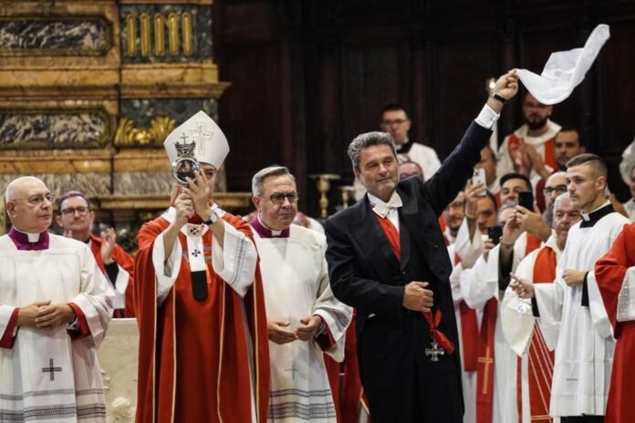 Mišias celebravo monsinjoras Vincenzo De Gregorio (Vinčenzas De Gregorijus), „šv. Januarijaus globos šventės proga, kurią tradiciškai lydi viltis, kad stebuklingai suskystės šventojo globėjo kraujas”, – sakoma arkivyskupijos interneto svetainėje.