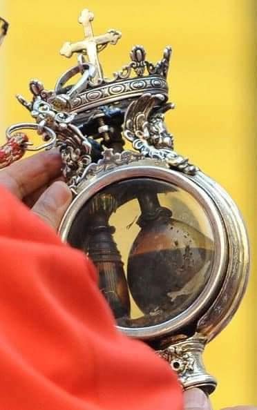 Neapolio arkivyskupas Domenico Battaglia (Domenikas Batalja) Neapolio katedroje laikė ampulę su III a. šventojo kankinio kraujo relikvija ir šūksniais bei plojimais visiems rodė, kad kraujas suskystėjo.