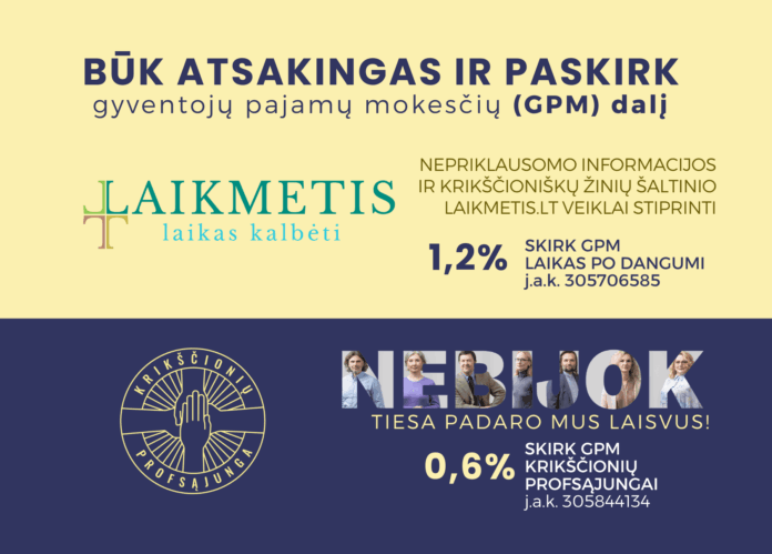 „Norime informuoti visuomenę apie galimybę paskirstyti 2,4 % nuo jau sumokėtų gyventojų pajamų mokesčių dalies ir taip prisidėti prie krikščioniškas vertybes atstovaujančių, ginančių ir puoselėjančių organizacijų veiklos. Svarbu žinoti, kad profsąjungai skiriama 0,6 proc. GPM dalis nekonkuruoja su nevyriausybinėms ar viešosioms įstaigos skiriama 1,2 proc. GPM dalimi“, – dėmesį atkreipia A. Globys.