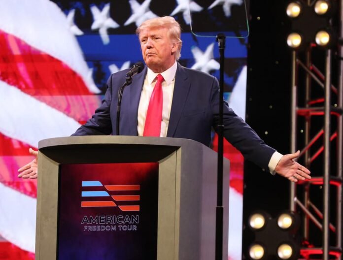 Televizijoje transliuotoje medžiagoje matyti, kaip pirmadienį iš buvusio JAV lyderio, tapusio pirmuoju šalies prezidentu, kuriam buvo pateikti baudžiamieji kaltinimai, rezidencijos Floridoje išvažiavo konvojus.