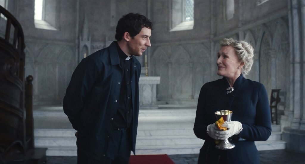 Tačiau 2024-ieji atnešė filmą „Konklava“, o šiemet ekranuose pasirodė Josho O’Connoro vaidmuo – kunigas Džudas Duplentis filme „Numirėlio pabudimas” (Wake Up Dead Man), trečiojoje Riano Johnsono serijos „Ištraukti peiliai” (Knives Out) dalyje.