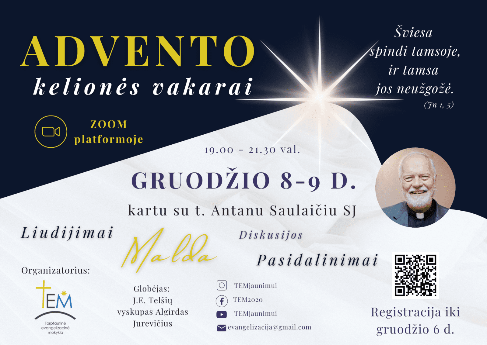 Tarptautinės Evangelizacines Mokyklos jaunimas kviečia jus į advento vakarus, kurie vyks gruodžio 8-9 dienomis.