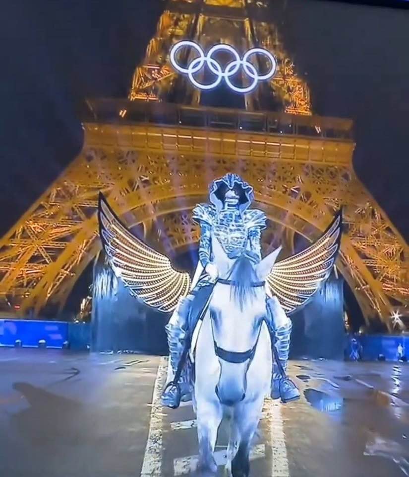 Paryžiaus olimpinės žaidynės prasidėjo penktadienį, liepos 26 d., iškilminga atidarymo ceremonija prie Senos upės Paryžiuje. Ceremonijoje dalyvavo atlikėjai ir dainininkai iš viso pasaulio. Vieną iš ceremonijos numerių atliko raitelis ant šviesaus žirgo, kuris žygiavo Senos upe ir patraukė daugelio renginio dalyvių ir ne tik renginio dalyvių žvilgsnius. Socialiniuose tinkluose žmonės pradėjo dalintis raitelio ant žirgo nuotrauką, kuri netrukus buvo susieta su mirties simbolika.