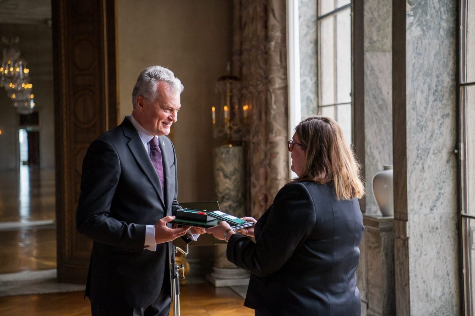Lietuvos Respublikos Prezidentas Gitanas Nausėda šiandien Stokholme ordino „Už nuopelnus Lietuvai“ medaliu apdovanojo Stokholmo miesto tarybos pirmininkę Cecilią Brinck.