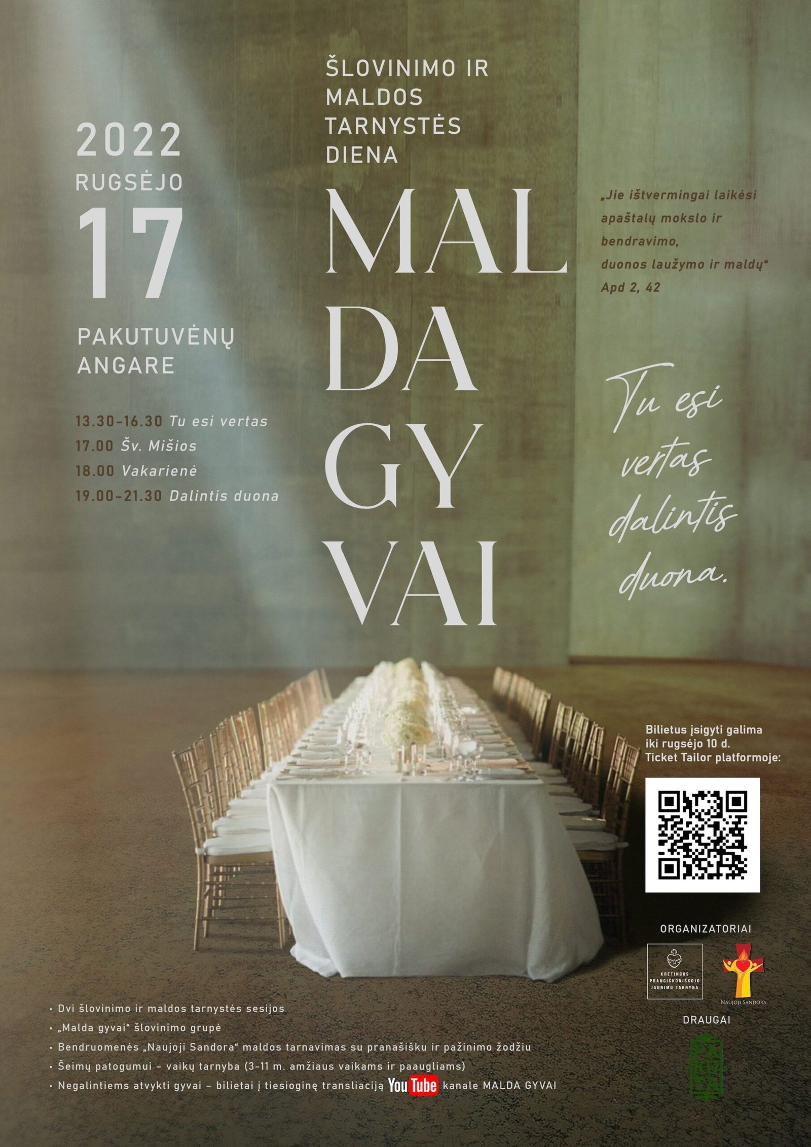 Išankstinė registracija į renginį vyksta iki rugsėjo 10 d. interneto svetainėje maldagyvai.lt.