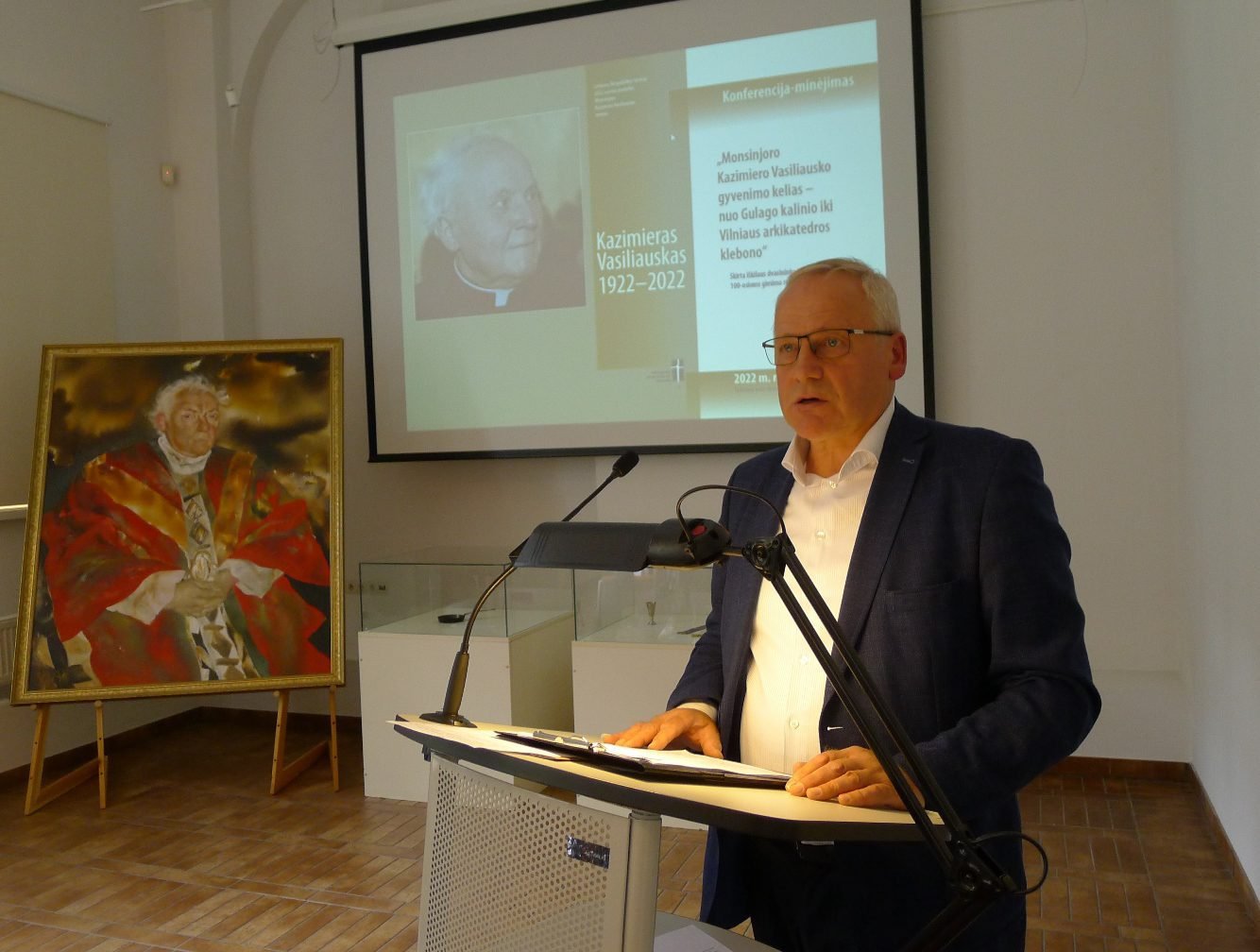 Konferencijos-minėjimo dalyvius sveikino ir savo įžvalgomis apie mons. K. Vasiliausko gyvenimo skirtus įvykius bei iškilios asmenybės bruožus dalinosi LGGRTC generalinis direktorius dr. Arūnas Bubnys.
