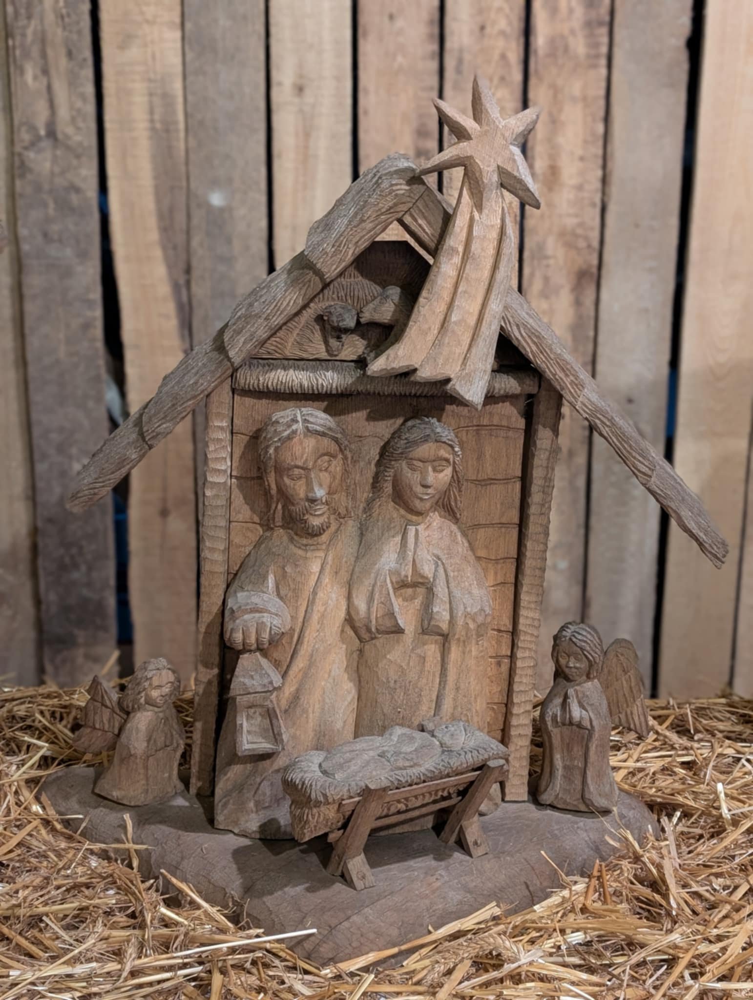 Obelynės kluone įkurdintoje parodoje eksponuojama 10 prakartėlių – skulptūrų grupių, vaizduojančių Kristaus gimimą, kurios buvo atvežtos iš Rokiškio krašto muziejaus.