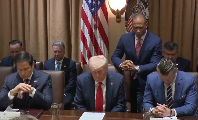 Trečiadienį įvykusiame pirmame Donaldo Trumpo vyriausybės posėdyje, pats JAV prezidentas paragino sekretorius pradėti posėdį nuo bendros maldos.