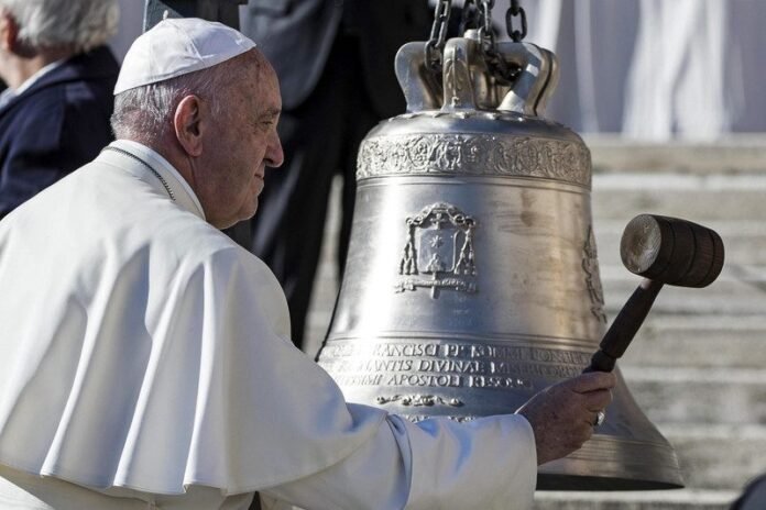 Popiežius Pranciškus varpą Ukrainai kartu su kitu varpu, skirtu Ekvadorui, pašventino Vatikano Šv. Petro aikštėje praėjusių metų spalį.