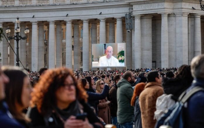 Sekmadienį popiežius vadovavo tradicinei vidudienio maldai ne iš, kaip įprasta, Apaštališkųjų rūmų Šv. Petro aikštės lango, o iš savo namų Šv. Mortos rezidencijoje Vatikane. Popiežius ištarė sveikinimo ir palaiminimo žodžius, o apmąstymą ir sveikinimus perskaitė Valstybės sekretoriato prelatas. Popiežiui laiminant buvo aiškiai matomas ant rankos priklijuotas intraveninis injekcinis vamzdelis.