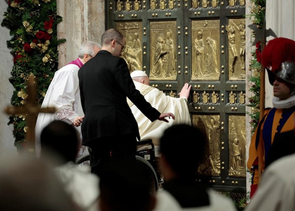 Šventosios durys buvo atidarytos antradienio, gruodžio 24 d., vakarą prieš Kalėdų nakties Mišias.