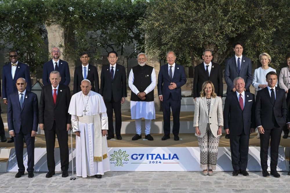 Penktadienį, birželio 14 d., dalyvaudamas pietų Italijoje vykusiame G7 susitikime, popiežius Pranciškus ne tik pasakė kalbą tarpvyriausybinio forumo dalyviams ir po to dalyvavo už uždarų durų vykusiame posėdyje, bet taip pat turėjo dešimt dvišalių susitikimų. Vienas popiežiaus sutiktų pasaulio lyderių – Indijos premjeras Narendra Modi.