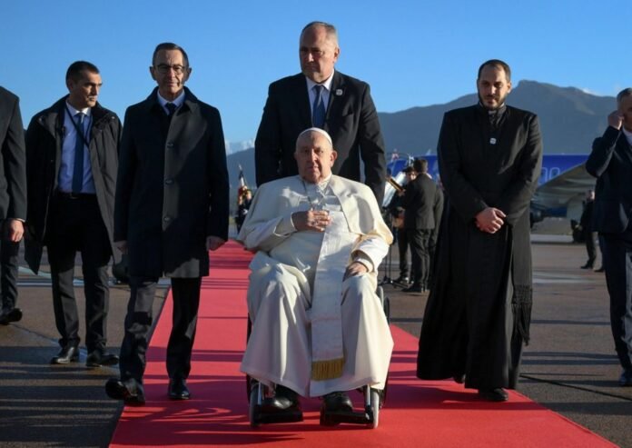 Popiežius Pranciškus sekmadienį nusileido Korsikoje per pirmąjį istorijoje pontifiko vizitą į Prancūzijos salą Viduržemio jūroje, matė naujienų agentūros AFP žurnalistai.