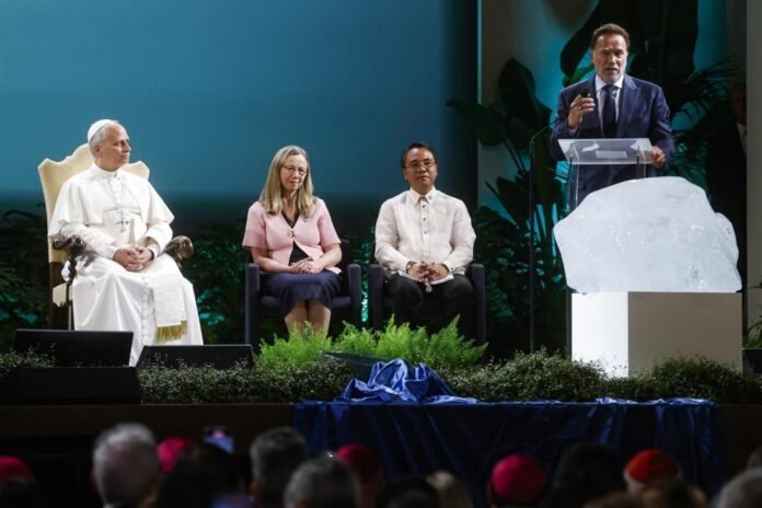 Netoli Romos vyksiančioje klimato konferencijoje trečiadienį dalyvavo popiežius Leonas XIV, aplinkosaugos ekspertai, aktyvistai iš viso pasaulio ir „Terminatoriaus“ (Terminator) žvaigždė Arnoldas Schwarzeneggeris (Arnoldas Švarcenegeris).