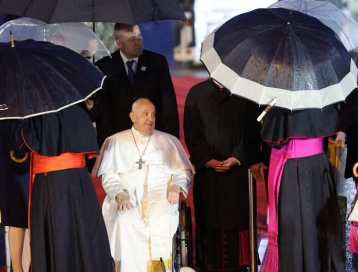 Po ryte pasakytos kalbos Pranciškus sveikino gatvėse susirinkusius žmones per griežtai saugotą kelionę „papamobiliu“.