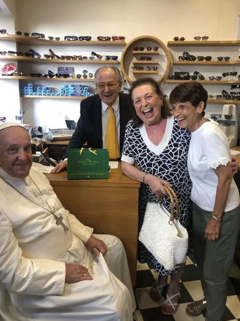Pasak italų laikraščio „Il Messaggero”, popiežius užsuko į „Alessandro Spiezia” akinių parduotuvę pasikeisti akinių lęšių po to, kai pastebėjo, kad savaitgalį per Mišias sunkiai skaitė savo homiliją.
