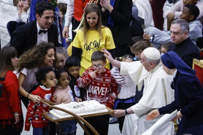 „Patikiu jus šv. Juozapo globai, kuris žinojo, kaip gražu, nors gal ir sunku, gerai atlikti savo darbą ir kaip malonu uždirbti duonos šeimai. Pažvelkime į jį ir jo gebėjimą ugdyti per darbą. Visiems jums ir jūsų artimiesiems linkiu ramių Kalėdų“, – sakė popiežius audiencijoje Italijos profsąjungos delegacijai.