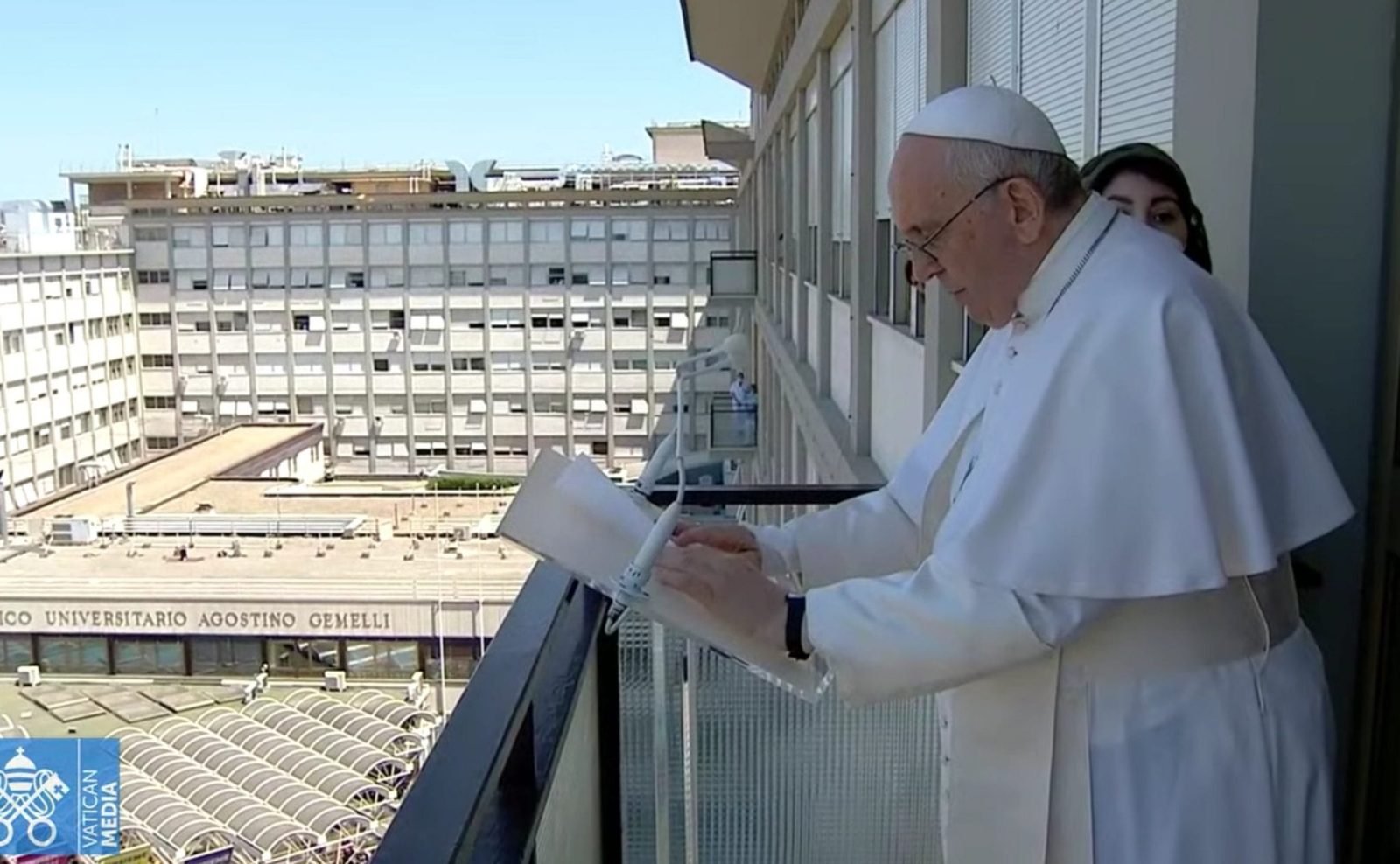 Sekmadienį popiežius Pranciškus kreipėsi į tikinčiuosius iš ligoninės dešimtojo aukšto balkono. Jis pakvietė sukalbėti „Viešpaties angelo“ maldą ir „iš visos širdies“ padėkojo susirinkusiesiems už jų paramą.