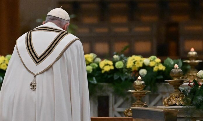 Per šeštadienį aukotas Vėlinių Mišias homilija nebuvo sakoma. Mišios baigėsi popiežiaus Pranciškaus malda.