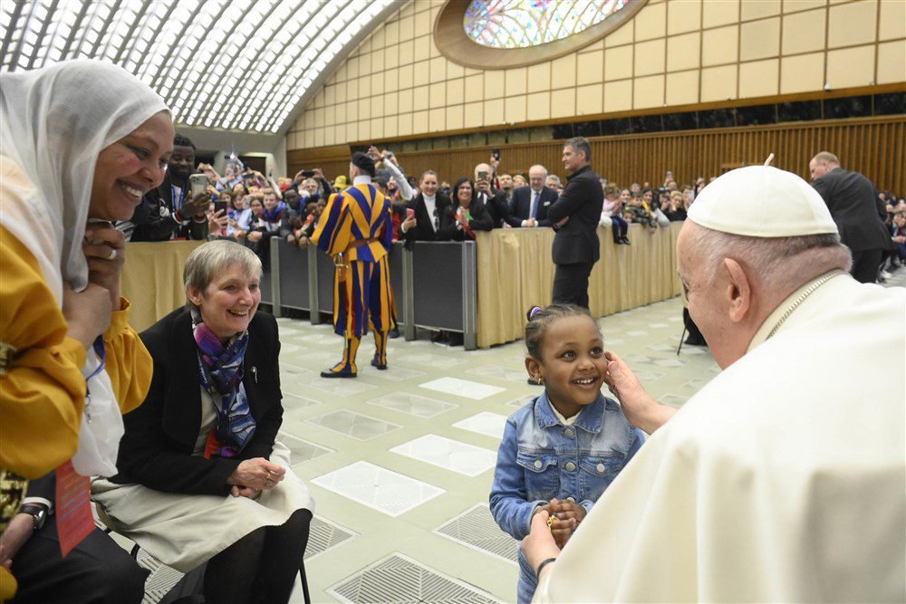 Šeimos iš Sirijos, Afganistano, Ruandos ir Ukrainos atvyko į Vatikano audiencijų salę susitikti su popiežiumi.