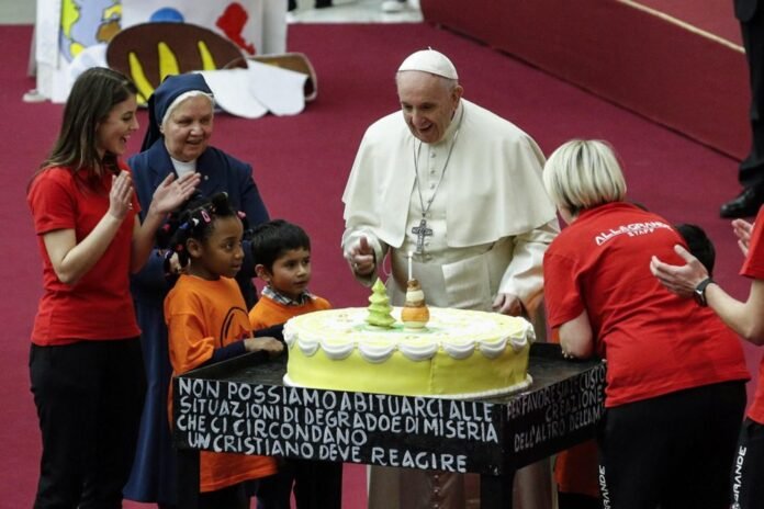 Šventasis Tėvas šią dieną gavo daug šiltų sveikinimų, o taip pat ir tortą, kurį jam įteikė Šv. Mortos dispensariumo Vatikane, kuriuo rūpinasi Šv. Pauliečio Vincento Gailestingumo dukterų kongregacija, prižiūrimi ir globojami vaikai iš mažai galimybių turinčių šeimų, nepriklausomai nuo jų kilmės ir įsitikinimų.