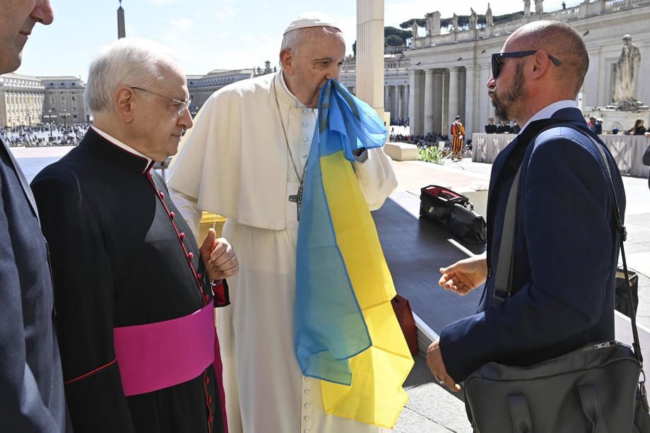 Pranciškus priminė, kad jis taip pat priėmė Ukrainos ambasadorių ir du kartus telefonu kalbėjosi su prezidentu Zelenskiu, priminė susitikimus su kitais Ukrainos atstovais, su vyskupais. Popiežius taip pat priminė, kad Rusijos invaziją į Ukrainą jis pavadino „nepriimtina, bjauria, beprasmiška, barbariška, ir šventvagiška“.