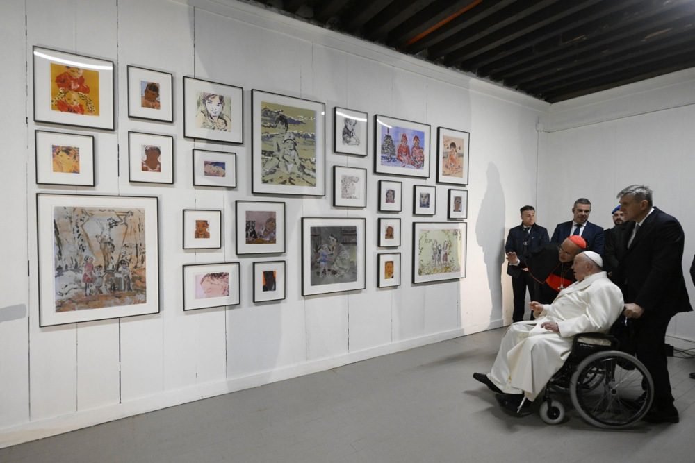 Sekmadienio rytą popiežius susitiko su Venecijos moterų kalėjimo teritorijoje įrengto Šventojo Sosto bienalės paviljono kuratoriais ir kai kuriais eksponuojamų darbų autoriais. Susitikimas vyko kalėjimo koplyčioje.