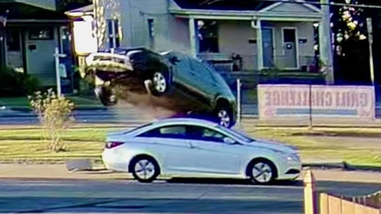 Tarp abiejų automobilių stovėjo tik kelio ženklas ir dar vienas vertikalus objektas, kyšantis iš žemės, rodo įvykio vaizdo įrašas. Jame, tarsi scenoje iš filmo „Greiti ir įsiutę”, visureigis pakyla virš Boko automobilio, jo neliesdamas, ir nusileidžia ant visų keturių ratų.