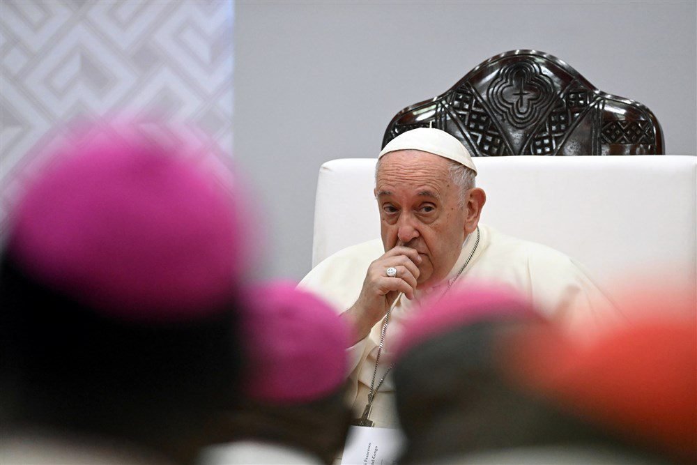 „Kyla klausimas: kaip atlikti tarnystę tokioje situacijoje? Galvodamas apie jus, šventosios Dievo tautos ganytojus, prisiminiau Jeremijo istoriją – pranašo, pašaukto vykdyti savo misiją dramatišku Izraelio istorijos laikotarpiu, neteisingumo, bjaurasties ir kančios akivaizdoje“, – sakė popiežius.