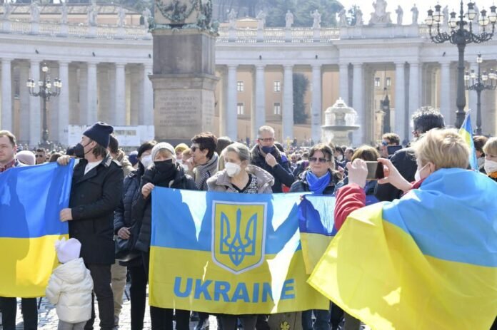 „Ukrainoje teka kraujo ir ašarų upės. Tai ne tik karinė operacija, bet ir karas, sėjantis mirtį, destrukciją ir kančią. Aukų skaičius auga, kaip ir bėgančių žmonių, ypač motinų ir vaikų, skaičius. Humanitarinės pagalbos poreikis šioje kankinamoje šalyje kas valandą smarkiai auga“, – sakė popiežius Pranciškus vidudienio maldos susitikime.