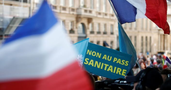 Prancūzai protestavo prieš sanitarinius pasus ir priverstinius skiepus
