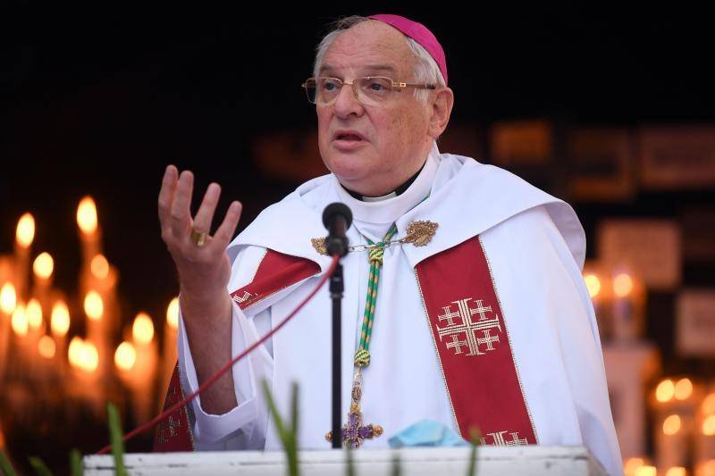 Prelatas padėkojo mokytojams ir tiems, kurie atsidavę švietimui, o po to pakvietė visus krikščionis melstis už aukas ir už mūsų sužeistą pasaulį” ir „prisijungti prie visų kitų geros valios žmonių už teisingumą ir taiką”.