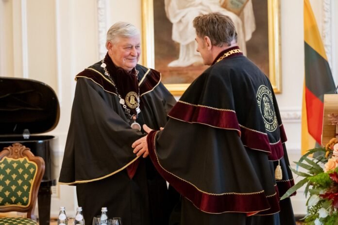 Prelatui Vytautui Steponui Vaičiūnui penktadienį vykusiame Vytauto Didžiojo universiteto (VDU) Senato posėdyje įteiktos garbės profesoriaus regalijos.